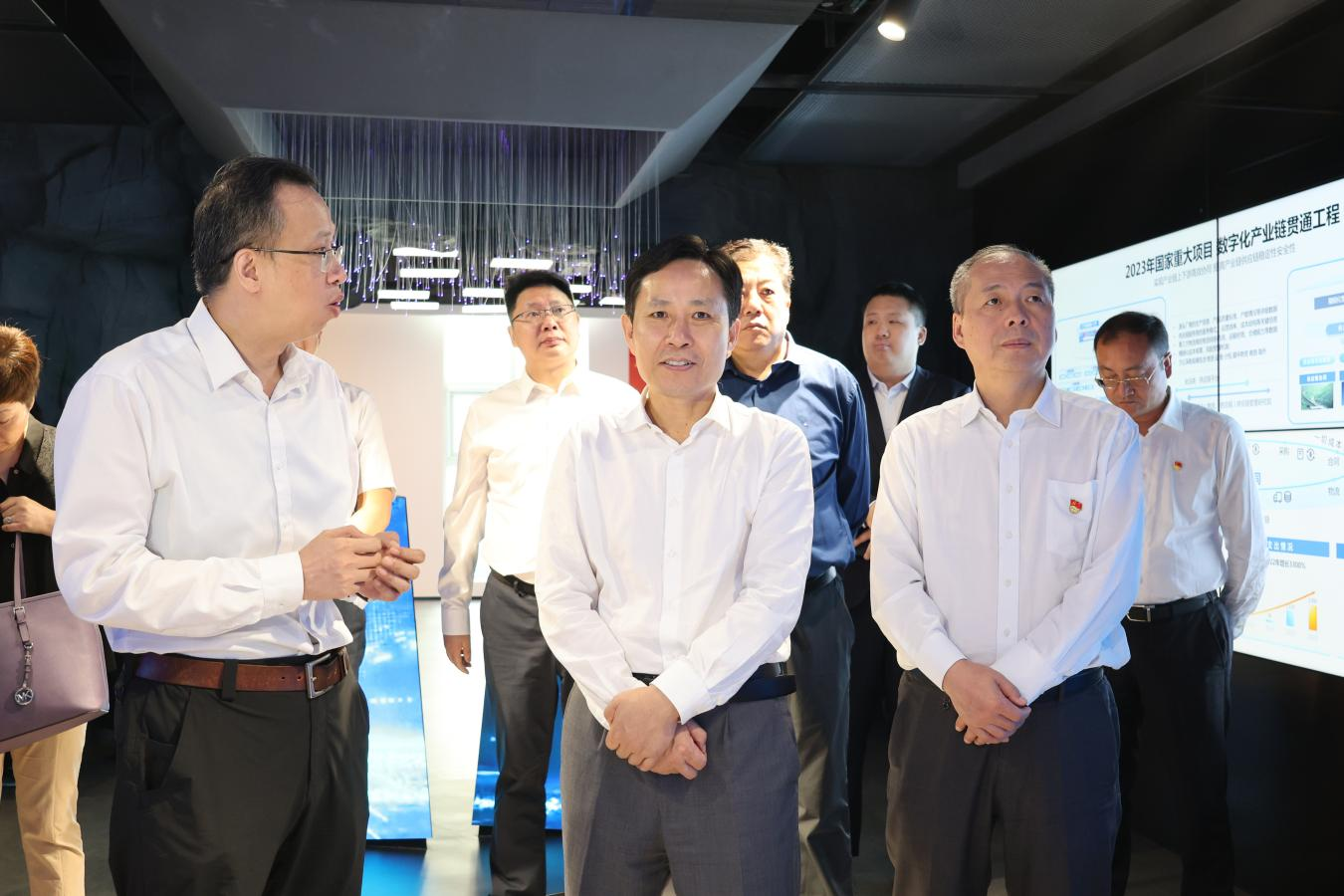 朱玉兵參觀了盤古云鏈數字展廳及辦公區域,聽取了盤古云鏈三大平臺的核心業務架構與建設進展的介紹。在深入了解盤古云鏈整合南開區高校,深化產學研協同創新,推動產業鏈供應鏈高質量創新發展取得的成果后,他對中國鐵建內部單位依托集群資源優勢扎根天津、服務天津經濟社會發展的責任擔當與階段性成效給予肯定。他強調,企業要聚焦產業核心需求,持續加大科技創新力度,進一步實現產業鏈上下游高效協同,為加快形成新質生產力、助力區域產業高質量發展貢獻更大力量。